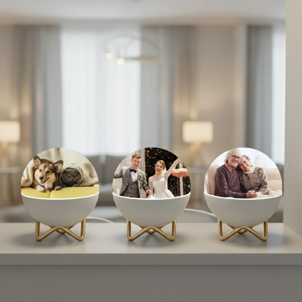 Su estética moderna y elegante convierte tus recuerdos en una pieza central. Añade un toque sofisticado a cualquier espacio, iluminando tu hogar.